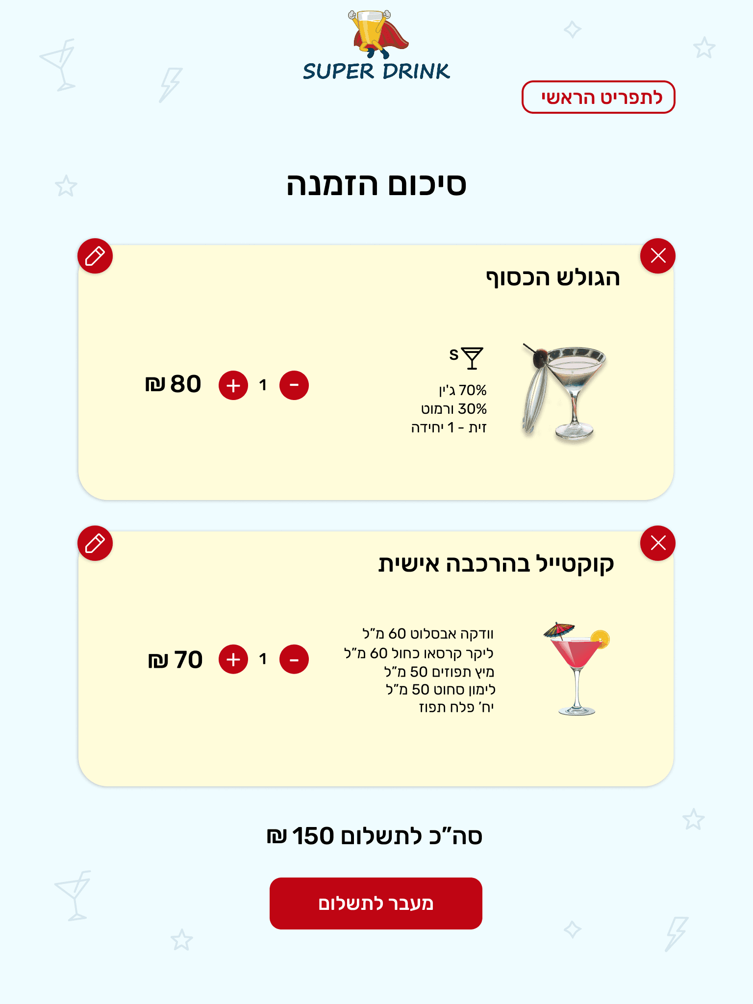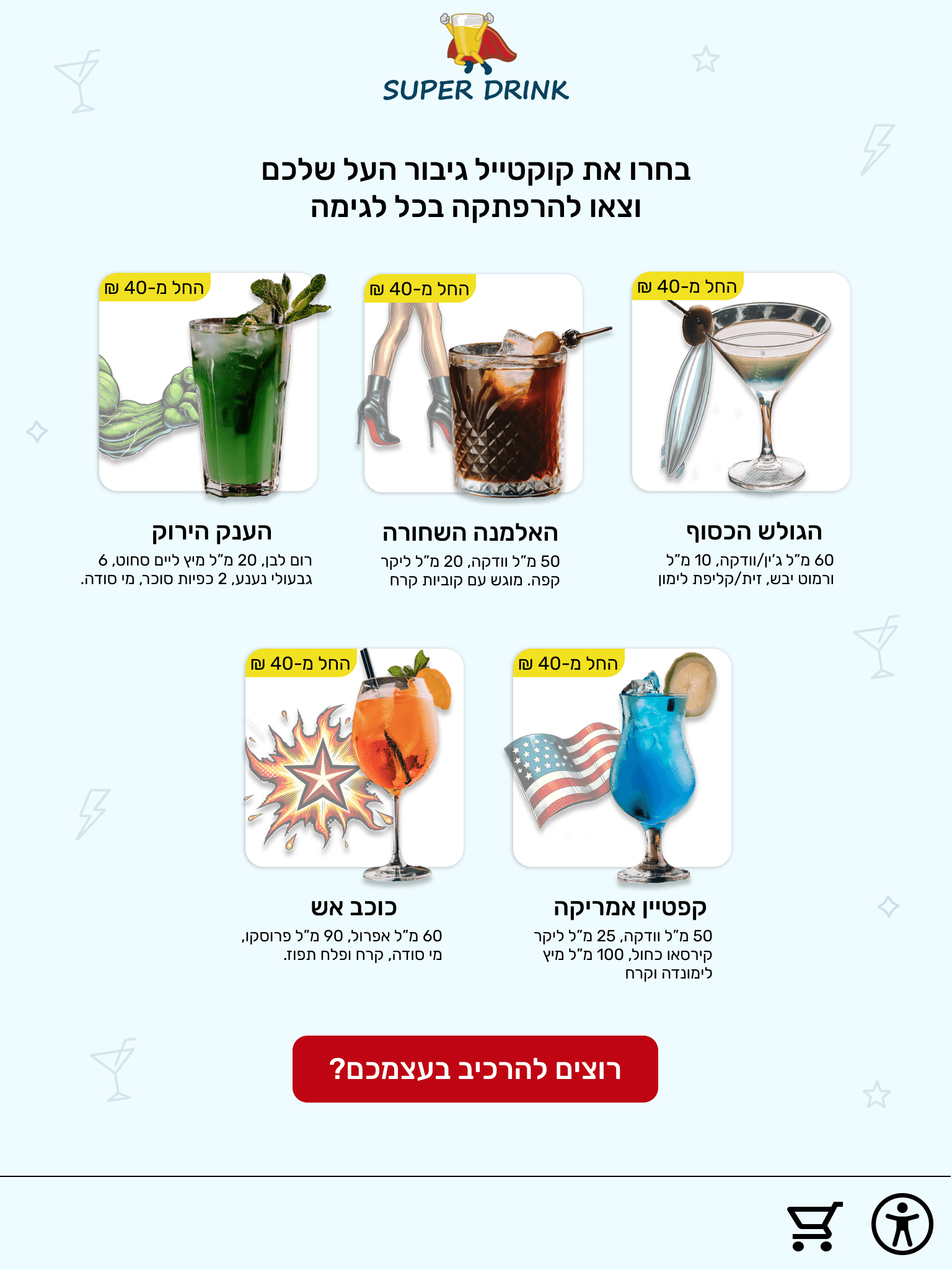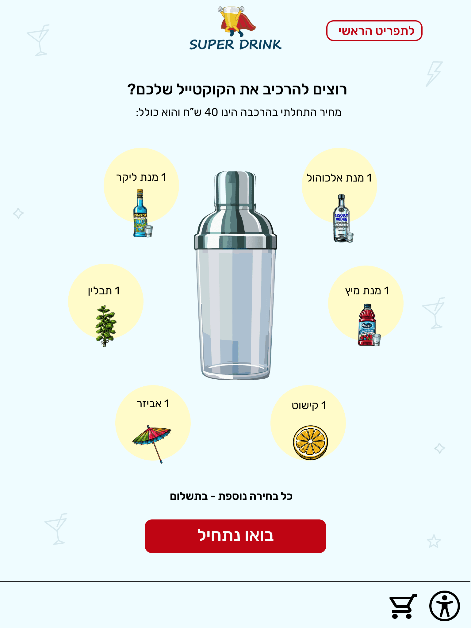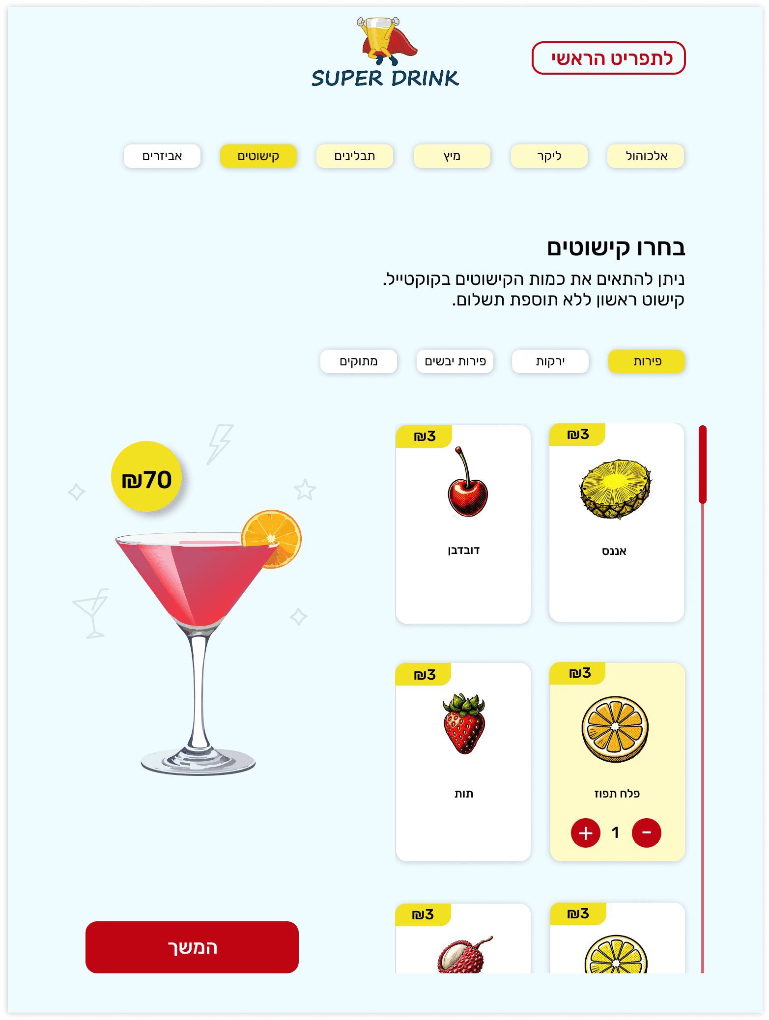 Built two clear flows for ready-made cocktails and custom drink creation.